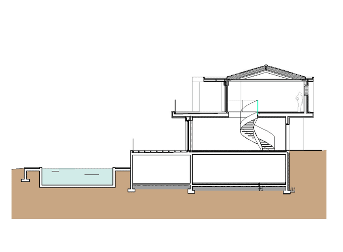 La maison individuelle est composé de deux niveaux : un rez logeant les pièces de jour et un étage pour les pièces de nuit. Elle se positionne en haut du terrain afin de privilégier les vues sur le lac. Les abords seront largement engazonnés et plantés.